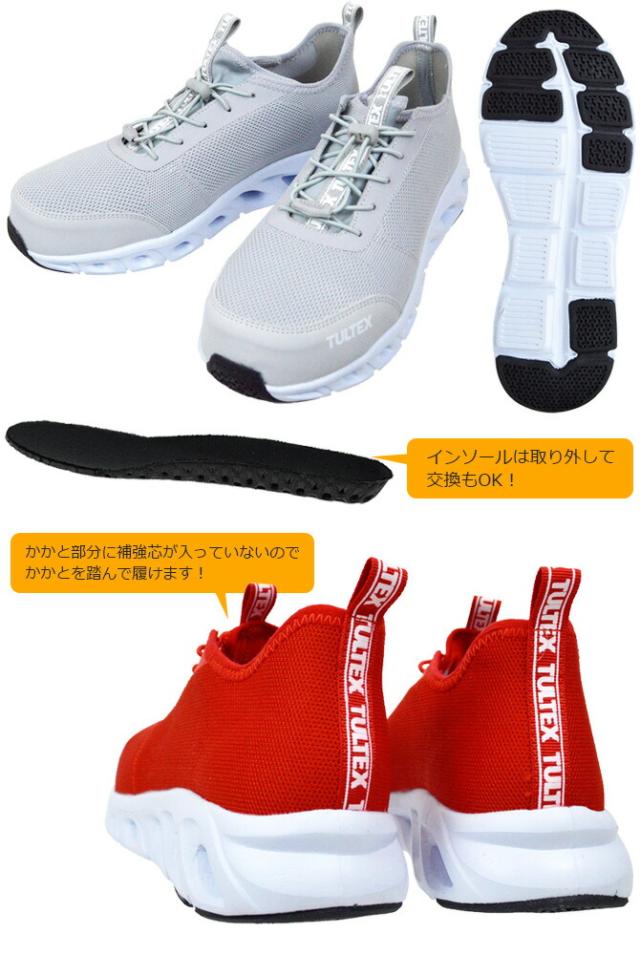 安全靴 スニーカー かかと踏み スリッポン TULTEX タルテックス AZ-51667 ローカット アイトス メンズ レディース 超軽量 高通気 踵踏み ゴム紐タイプ メッシュ 樹脂先芯 作業靴 おしゃれ