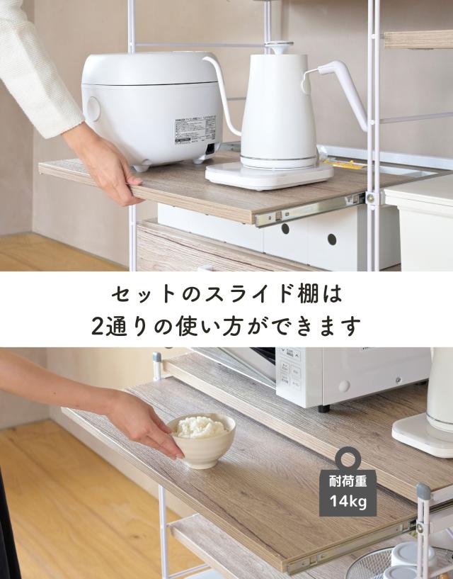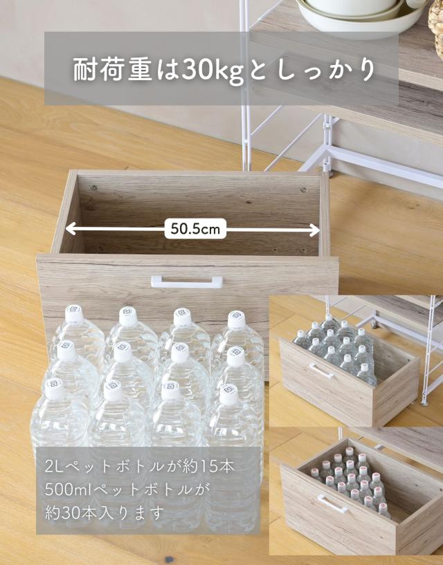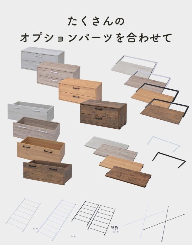 | 商品説明 | ●【取り付け時の注意事項】 ※2人以上ですと作業がしやすいです。 ※横揺れ軽減のため、付属のコの字バーを取り付けてください。 ※ストッカーのキャスターは一方向仕様です。 ※プラス、マイナスドライバーをご用意ください ※キャスターと併用はできません。 ※コの字バーは並列できません。段をずらして設置してください。※スライド棚は本体フレームの桟、下から10段目までの間に取り付けてください。 ●幅65cmのウッドシェルフ本体とオプションパーツを合わせたセット 【セット内容】 ウッドシェルフ本体×1 ストッカー+コの字バー× スライド棚×1 クロスバー×1 支柱×1 【ウッドシェルフ本体】 ●モノに合わせて棚の位置を変えられる木製棚板のスチールラック ●インボックスなど収納ボックスが縦にすっぽり収まるサイズ設計 ●棚板は木の質感があってお手入れもかんたんな、合成樹脂化粧繊維板 ●軽くて強いフラッシュ構造で、1段あたり25kgの耐荷重 ●フックでフレームに引っ掛けるだけなので、位置の変更もかんたん 【ストッカー+コの字バー】 ●耐荷重30kgのしっかり設計 ●2Lのペットボトルが最大15本収納可能 ●カラフルなパッケージをしまえる深さで隠す収納をサポート ●正面から目立ちにくい隠しキャスター ●サイズ: 幅57×奥行き37×高さ31.5cm 重量9.5kg ●内寸:幅50.5×奥行き32.5×深さ22.5cm 【スライド棚】 ●レール式でスムーズな開閉 ●棚板の下に付けるとちょい置きできるトレーに ●木の質感があってお手入れもかんたん ●スライド幅: 22cm ●耐荷重: 14kg ●サイズ: 幅63×奥行き38.5×高さ2cm 重量4kg ●内寸: 幅56×奥行き33.5cm 【クロスバー】 ●サイズ: 92.5 重量0.6kg 【支柱】 ●サイズ: 幅2×奥行き40×高さ123.5cm 重量2kg |