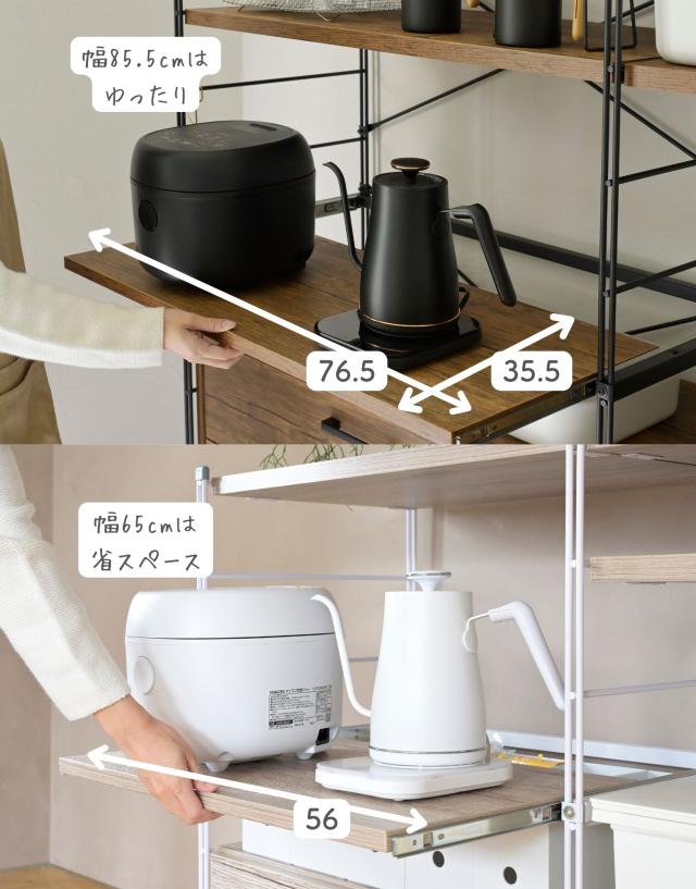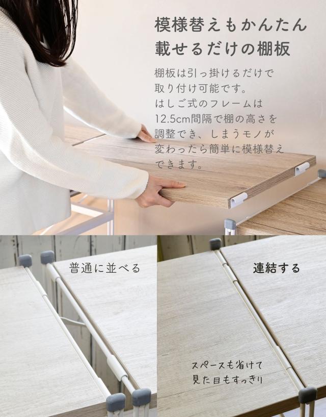 | 材質 | フレーム: スチール(粉体塗装) 棚板: 合成樹脂化粧繊維板(塩化ビニル樹脂) |