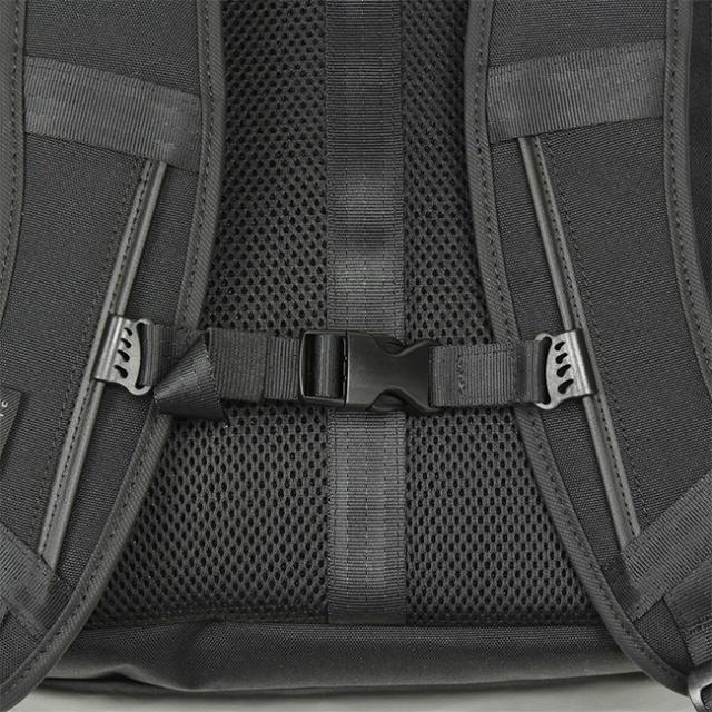 リュックベルトにはチェストベルトを付属しており、肩ベルトのずり落ちを防ぎます。ベルト位置の高さと長さの調整も可能です。
