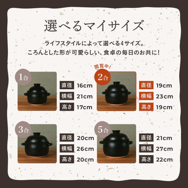 たいせい窯 ご飯鍋 土鍋 炊飯鍋 一人用 ご飯 ごはん鍋 2合 ブラック ホワイト 黒 白 G00003 G00004