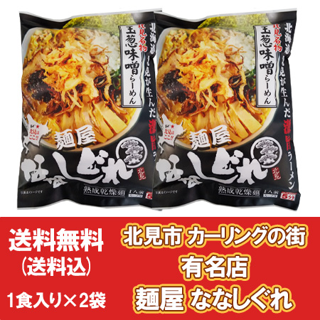 北見市 カーリングの町 北見ラーメン ななしぐれ 麺屋 玉ねぎ味噌ラーメン 送料無料 北見 ラーメン 玉ねぎ 味噌 インスタント 袋麺 乾麺 ラーメン スープ 付 1袋×2 きたみ たまねぎ 麺類