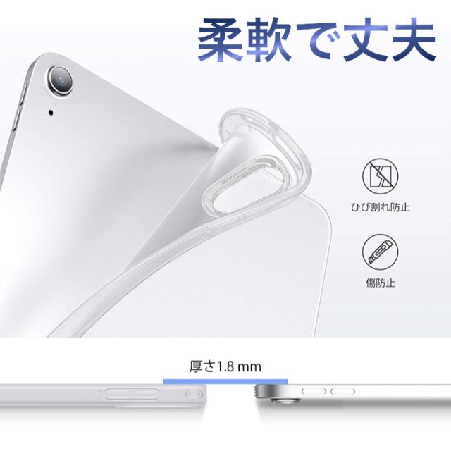 【抜群の透明度】超透明なので新型iPadのデザインを引き立てることができます。内側がマイクロドットパターンになっているのでウォーターマークを防止することができます。【スリムで軽量】スタイリッシュなデザインと高品質素材により、このケースはiPadの軽量さや薄さを損なうことなく、ダメージからiPadを保護することができます。【誰でも使いやすい】精確なカット加工により、スピーカー、ポート、カメラに影響しません。また、ボタンが押しやすく、ホコリがつくのを防ぎます。Apple Pencilのペアリングや充電に影響を与えることなく、保護することができます。【Apple Pencil 2対応】側面を精確にカット加工し、Apple Pencil 2のために十分なスペースを確保しているので、ケースをつけた状態で、磁気を利用してiPadに引っ付けてペアリング・充電することができます。対応機種・iPad Air11インチ(2024)・iPad Pro11 (2022/2021)・iPad Air5/Air4 (2022/2020)