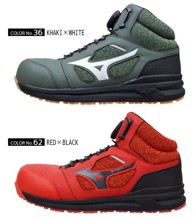 ミズノのテクノロジーを駆使したワーキングシューズ「オールマイティー」のミッドカットのBoa搭載モデルです。
