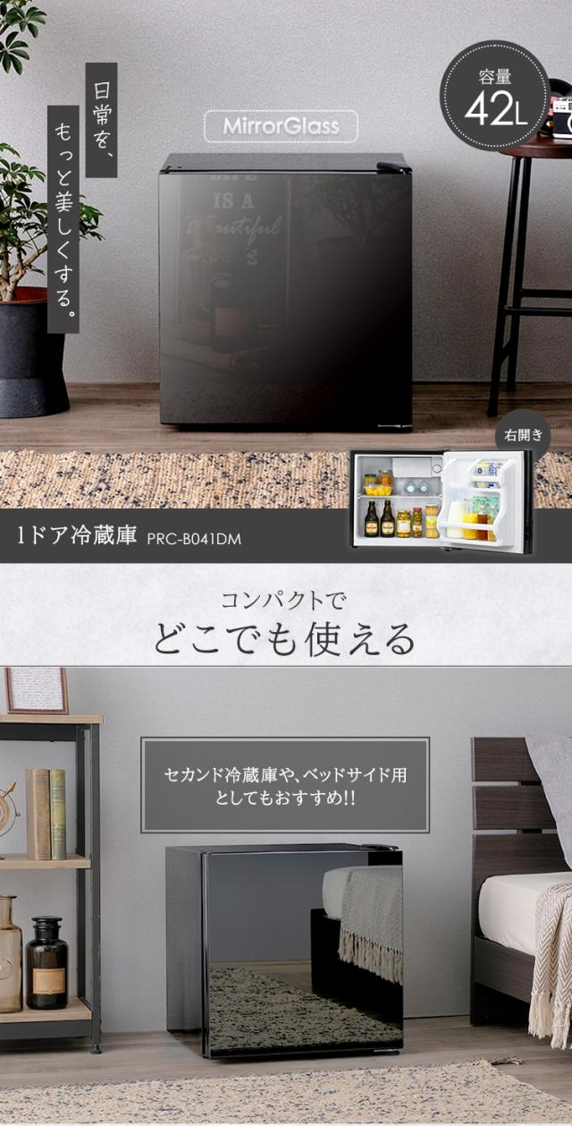 冷蔵庫 一人暮らし 小型 ノンフロン冷蔵庫 42L PRC-B041DM-B ノンフロン冷蔵庫 ノンフロン 右開き シンプル パーソナルサイズ キッチン家電 送料無料