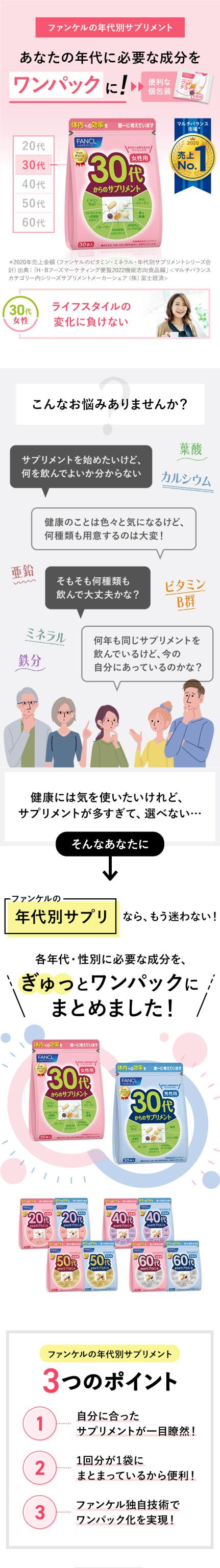 30代からのサプリメント 女性用<栄養機能食品> 45〜90日分 【ファンケル 公式】[FANCL サプリ サプリメント ビタミンc ビタミンb ビタミン ミネラル 鉄 女性 葉酸 HTCコラーゲン GABA コエンザイムQ10 30代 ギャバ 鉄分 dha coq10 美容 ヒドロキシチロソール 鉄サプリ]