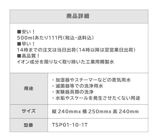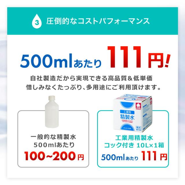 サンエイ化学 工業用精製水 10L×1箱 コック付き の特長と主な用途