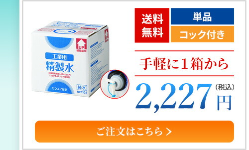 工業用精製水(せいせいすい) 10L×1箱 コック付き |
