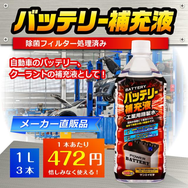 サンエイ化学 バッテリー補充液 1L×3本 の特長と主な用途