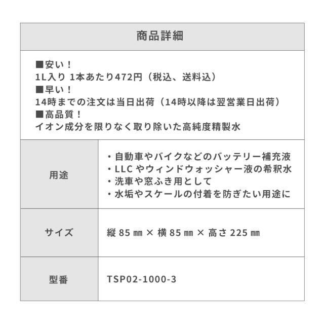 バッテリー補充液(せいせいすい) 1L×3本 |