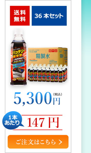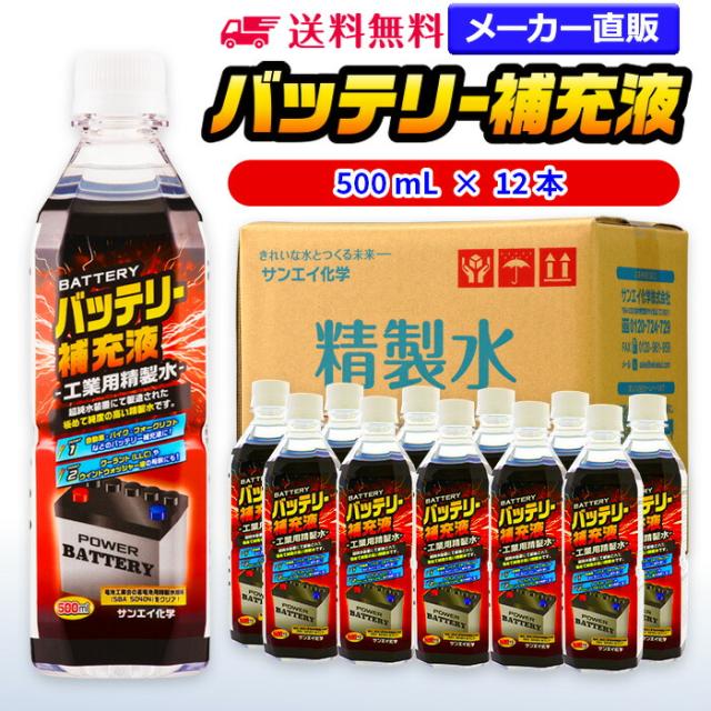 精製水 500ml サンエイ化学 精製水 バッテリー補充液 500mL × 12本