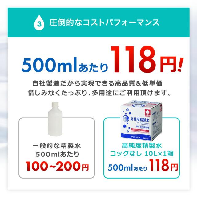 サンエイ化学 高純度精製水 10L×1箱 コックなし の特長と主な用途