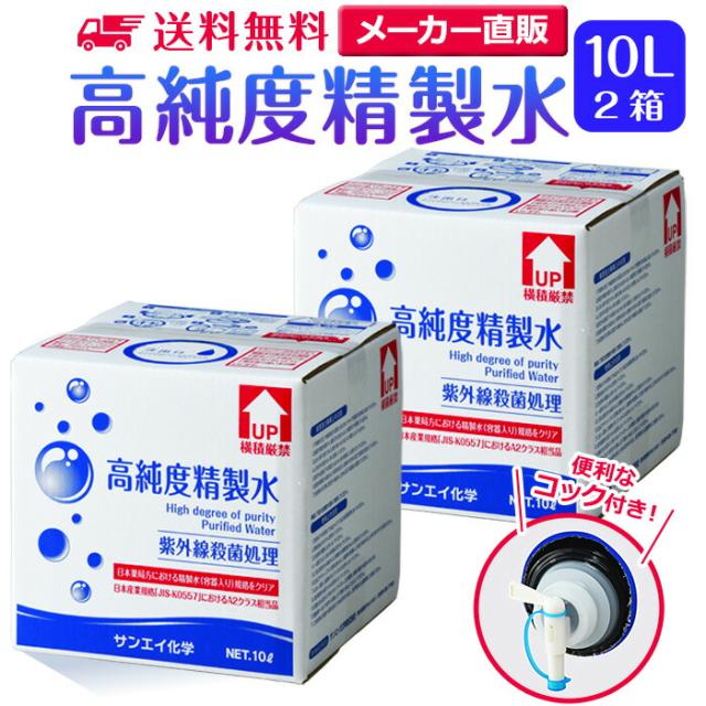 精製水 10l サンエイ化学 精製水 高純度精製水 10L × 2箱セット コック付き 大容量