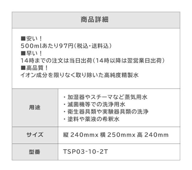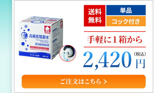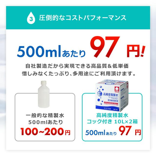 サンエイ化学 高純度精製水 10L×2箱 コック付き の特長と主な用途