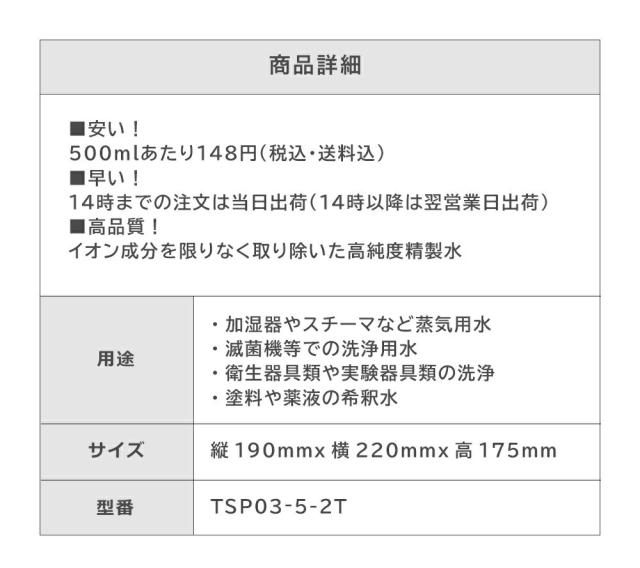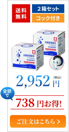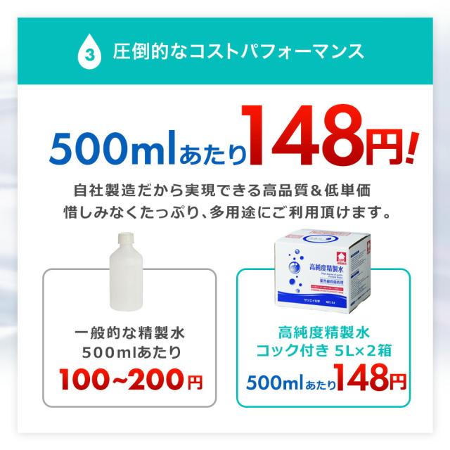 サンエイ化学 高純度精製水 5L×2箱 コック付き の特長と主な用途