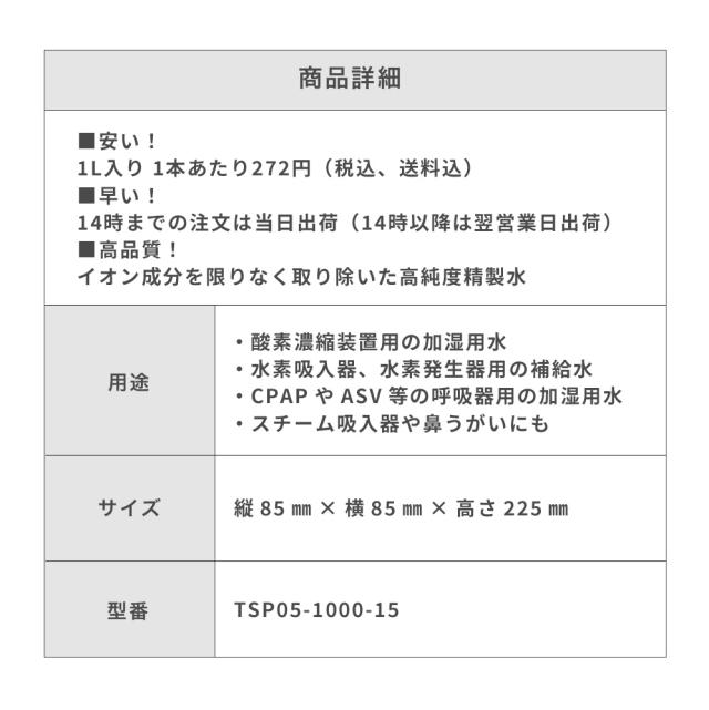 呼吸器用精製水(せいせいすい) 1L×15本 |