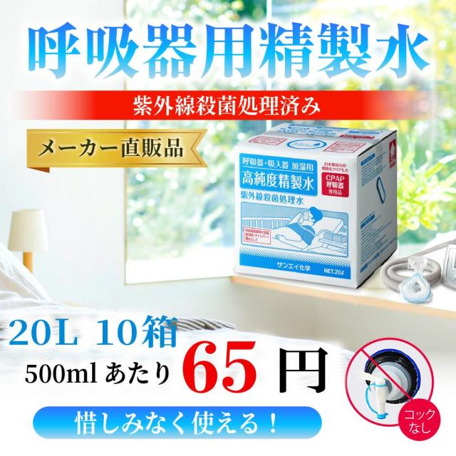 精製水 20l サンエイ化学 精製水 呼吸器用 精製水 20L × 10箱セット コックなし 大容量