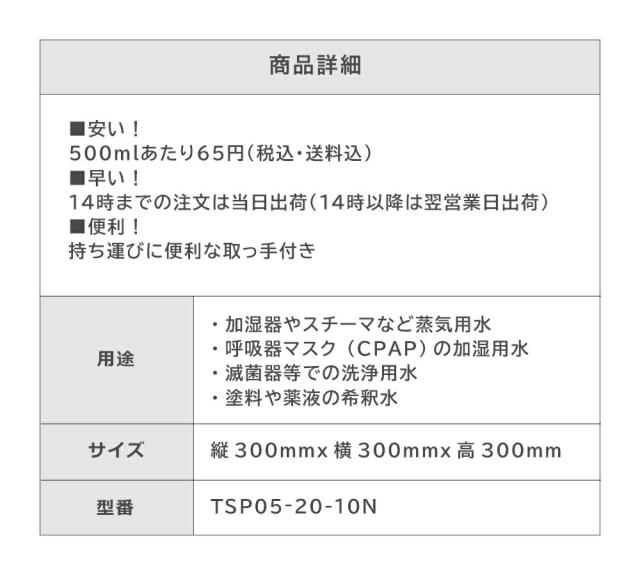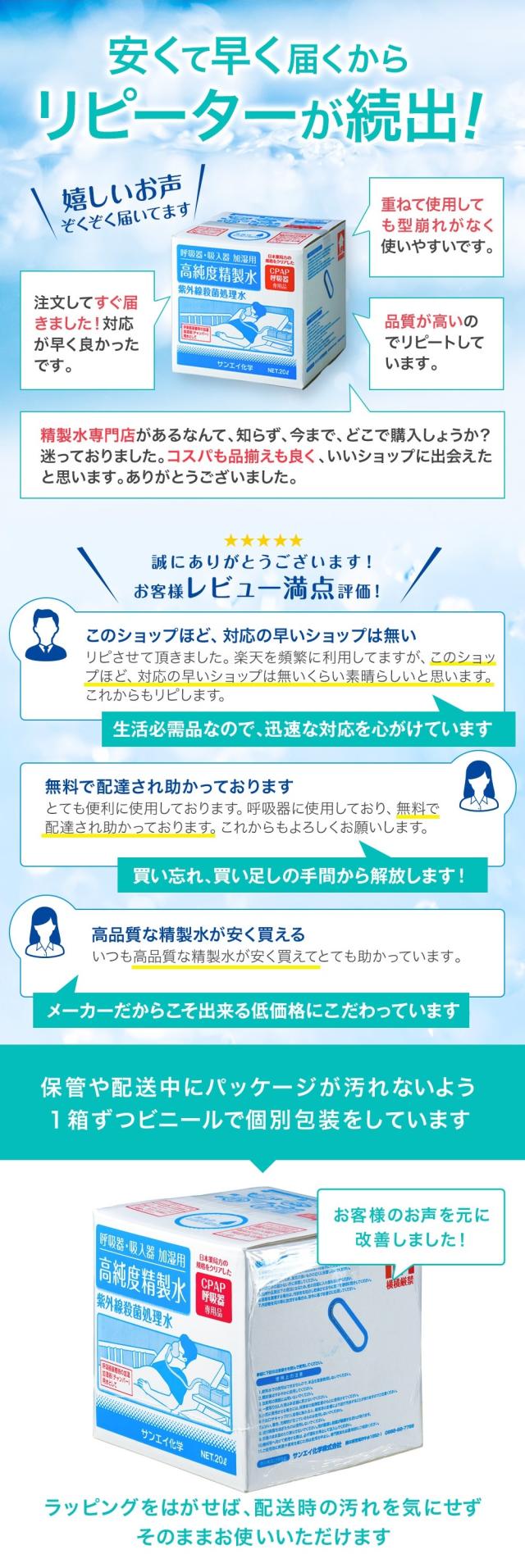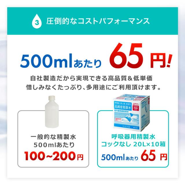 サンエイ化学 呼吸器用精製水 20L×10箱 コックなし の特長と主な用途