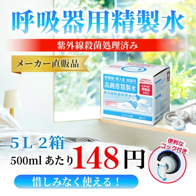 サンエイ化学 呼吸器用精製水 5L×2箱 コック付き の特長と主な用途
