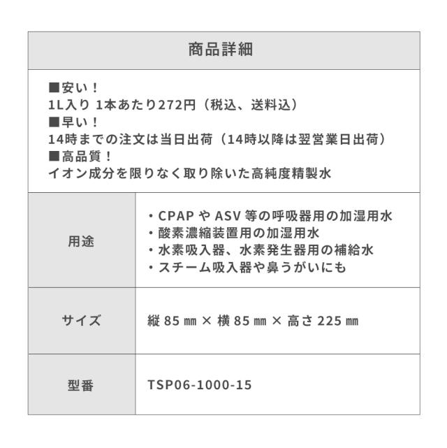 CPAP用精製水(せいせいすい) 1L×15本 |