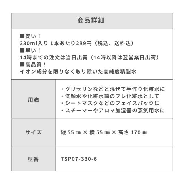 スキンケア用精製水(せいせいすい) 330mL×6本 |