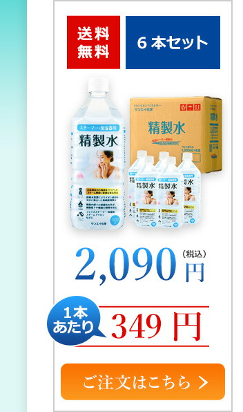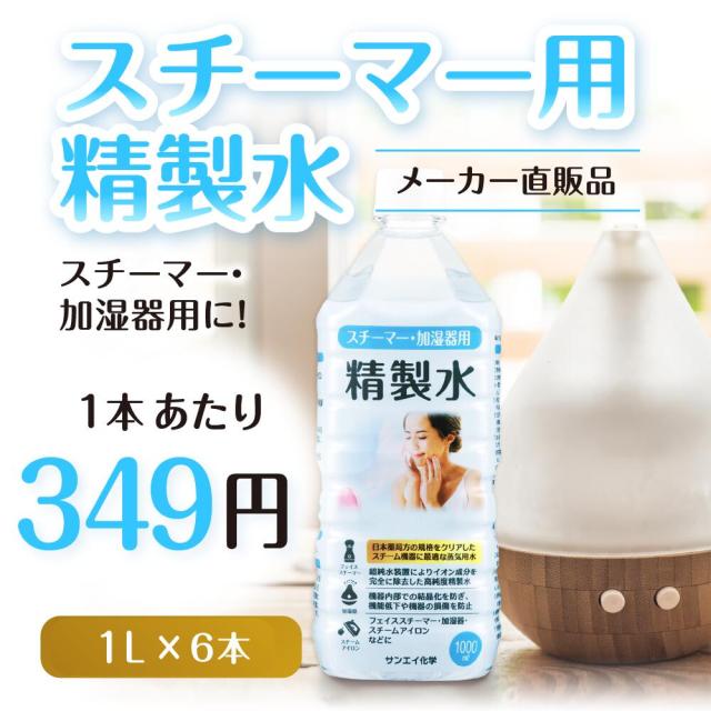精製水 スチーマー用 1l サンエイ化学 精製水 スチーマー用 精製水 1L × 6本セット 加湿器やナノケア、フェイススチーマーなどに