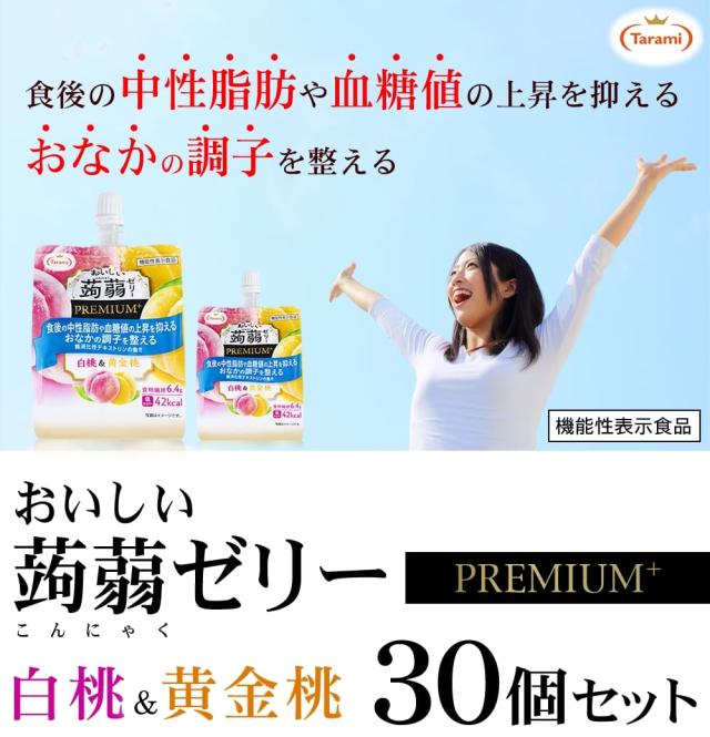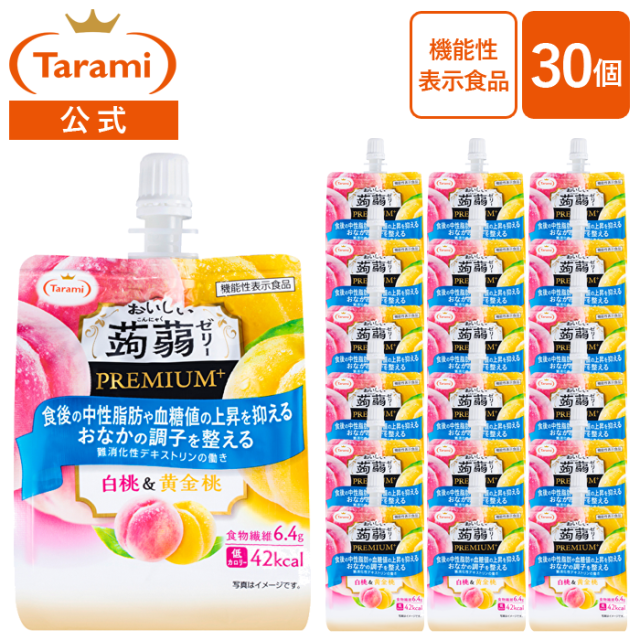 たらみ おいしい蒟蒻ゼリー PREMIUM+ 白桃&黄金桃 150g 30個セット 機能性表示食品 低カロリー 送料込み