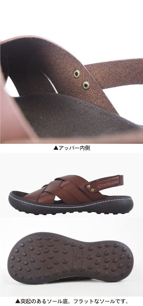 ■アッパーの編み込みデザインがおしゃれなサンダル。ヒール高低差のほぼないぺたんこサンダルで履きやすく疲れにくい!踵ストラップ付きなので足とフィットします。
