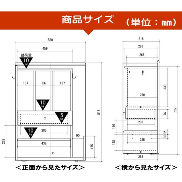 [右縦収納部]約幅9×奥行28.8×高さ(フック有65.1cm),(背板トップ78cm)