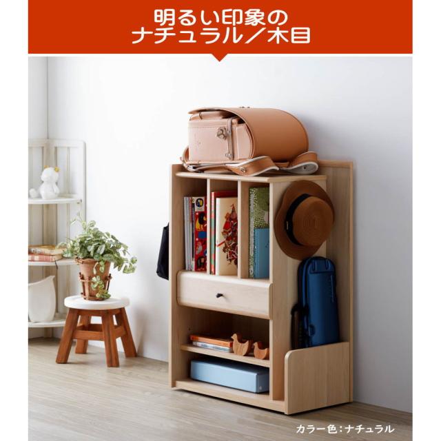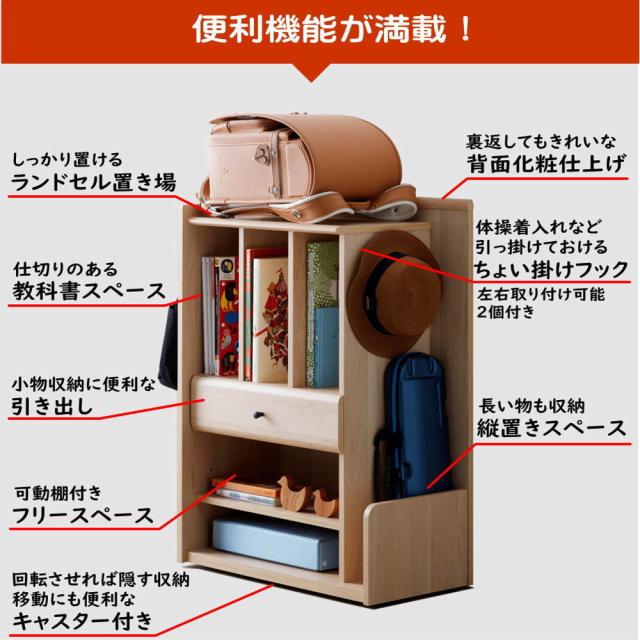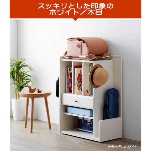 ランドセルラック キャスター付き 多機能 収納ラック 引出し付き フック付き 収納棚 お片付け 収納ワゴン 整理整頓 勉強道具 道具箱 子供部屋 おしゃれ ホワイト 白 ナチュラル 木目化粧 【代引き不可】【送料無料(一部地域を除く)】