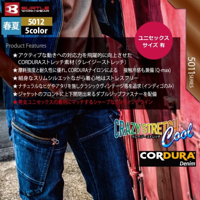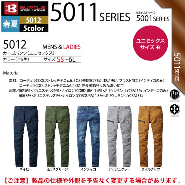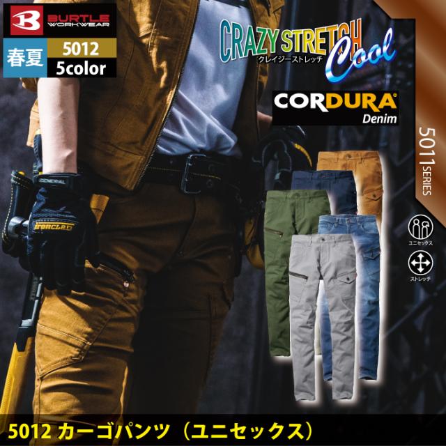 バートル BURTLE 作業着 作業ズボン 5012 カーゴパンツ SS-3L 春夏 ストレッチ 作業服 おしゃれ 接触冷感 デニム 5011対応