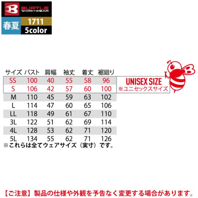 【即日一部あり】バートル BURTLE 作業着 1711 ジャケット SS-LL 作業服 春夏 ストレッチ ユニセックス 制電 T8118 テーパード