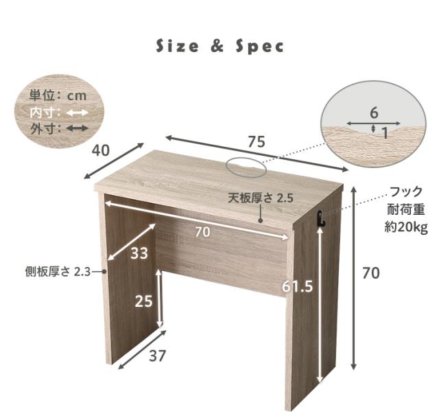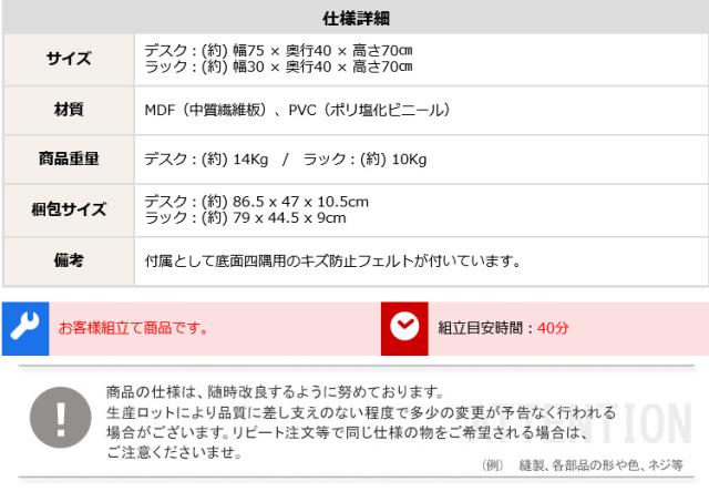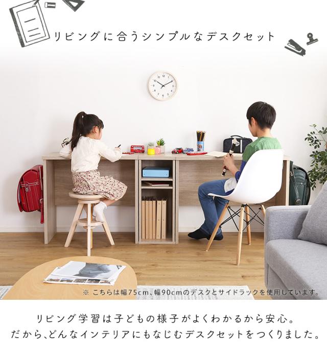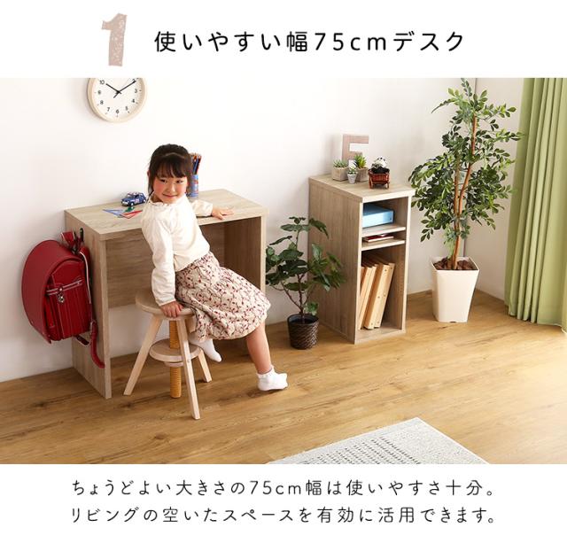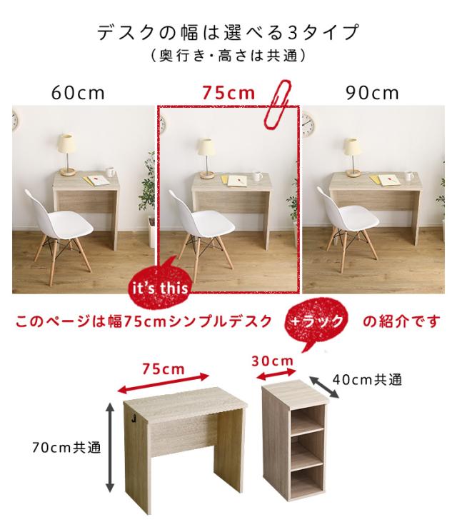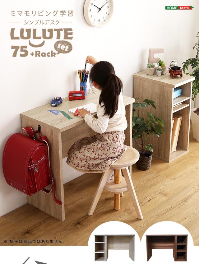 シンプルデスク75cm幅 + サイドラック30cm幅セット LULUTE(ルルテ) デスク 幅75cm ラック 幅30cm 奥行40cm シンプル 勉強机 学習机 子供 大人 作業机 2色