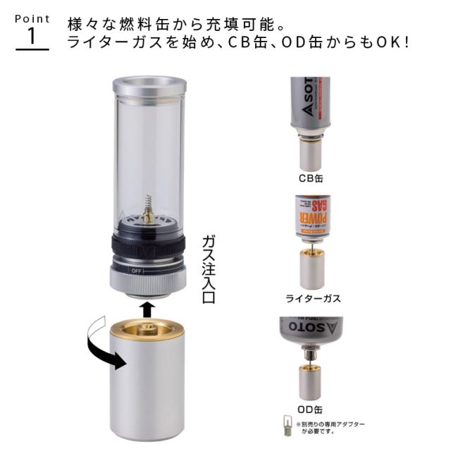 ライターガスをはじめ、 CB缶、OD缶からも充填OK!