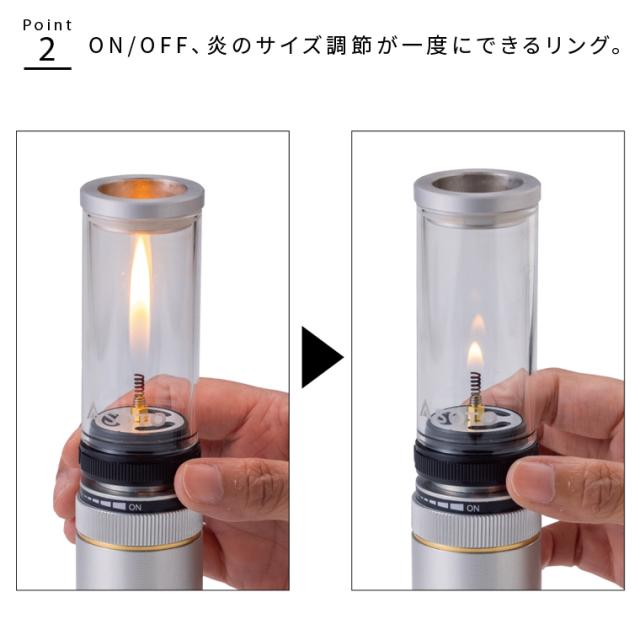 充填式専用タンク・OD缶どちらにも取り付けできるキャンドル風ガスランタン