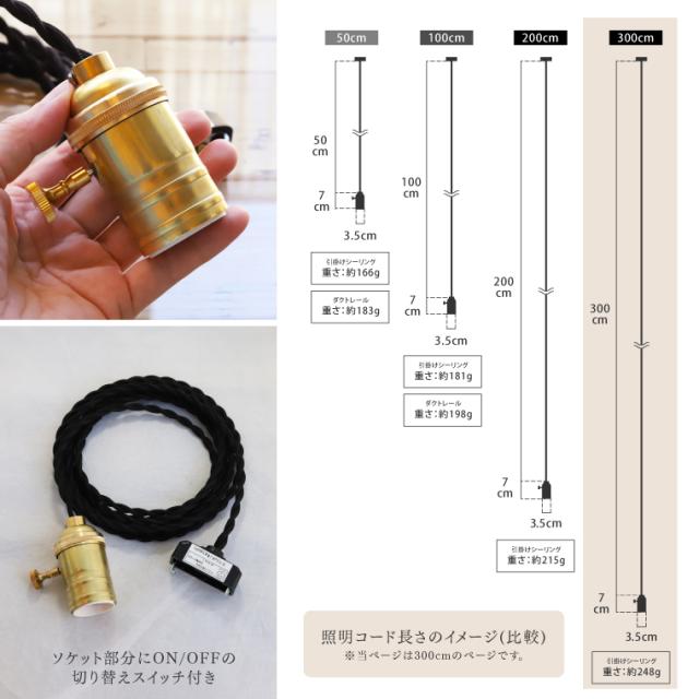 リューズソケット 300cm ロングコード E26用 ペンダントライト 引掛けシーリング スイッチ付き ダイニング 照明 真鍮 ゴールド 北欧 レトロインテリア 日本製 店舗照明 天井照明 1灯 多灯使い 間接照明 インテリア 高級感 カウンターキッチン agesugi_sis