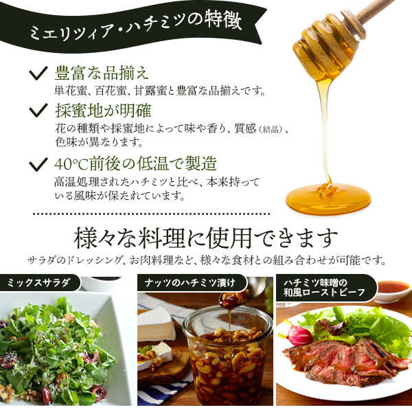 ※分離や白く固まっている場合がありますが、はちみつ特有の結晶化ですので品質には全く影響はございません。スプーン等で混ぜてお召し上がりください。