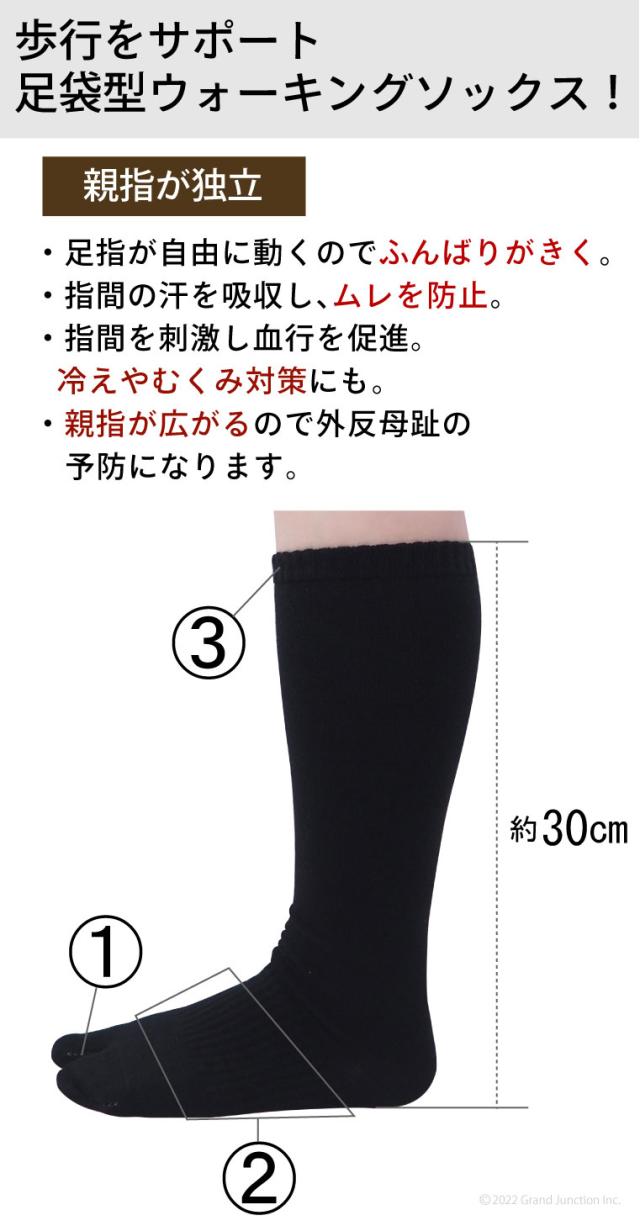 ■親指が独立している足袋型ソックスは、親指が自由に動かせるので足指で地面をとらえる歩き方ができます。 それによって指が鍛えられるので外反母趾の予防や、疲れにくい正しい歩行がしやすくなるといった効果があります。