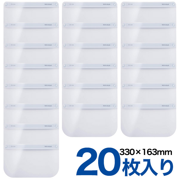 フェイスシールド 20枚セット 顔の周り しっかりガード フェイスシールド301 フェイスガード 軽量 透明シールド フェイスカバー 顔ガード 飛沫対策 幼稚園 学校 介護 医療現場 歯医者 店頭 お店 接客 対面販売 感染予防 ウイルス対策 業務用 男女兼用 花粉 風邪予防