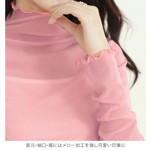 シアートップス メロウトップス ハイネック 新作 透け カットソー レディース シアー トップス インナー 長袖 シースルー メロウ メロー チュール 無地 重ね着 UVケア 上品 素肌隠し セカンドスキン