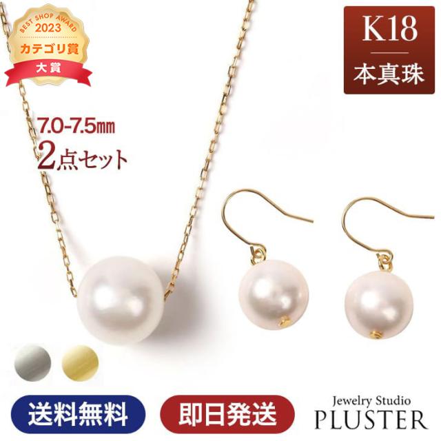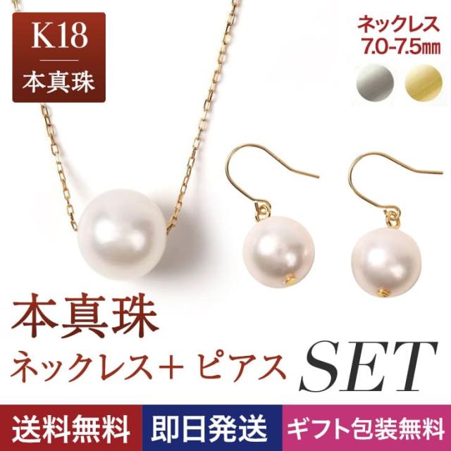 ネックレス パールネックレス パール 一粒 K18 ピアス パールピアス 2点 セット スルーネックレス あこや真珠 レディース 真珠 本真珠 宇和島 冠婚葬祭 フォーマル 7mm-7.5mm 結婚式 入学式 卒業式 人気 二十歳 ギフト クリスマス プレゼント 誕生日