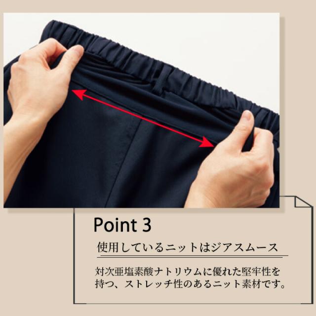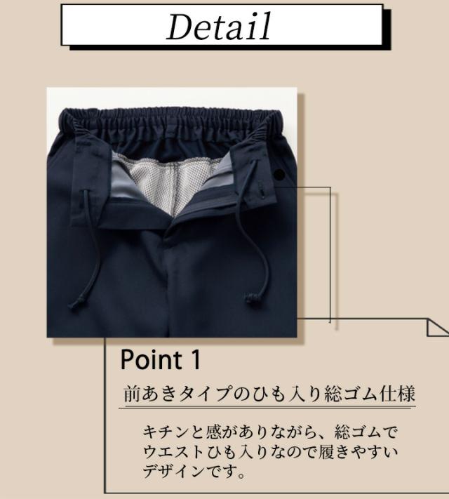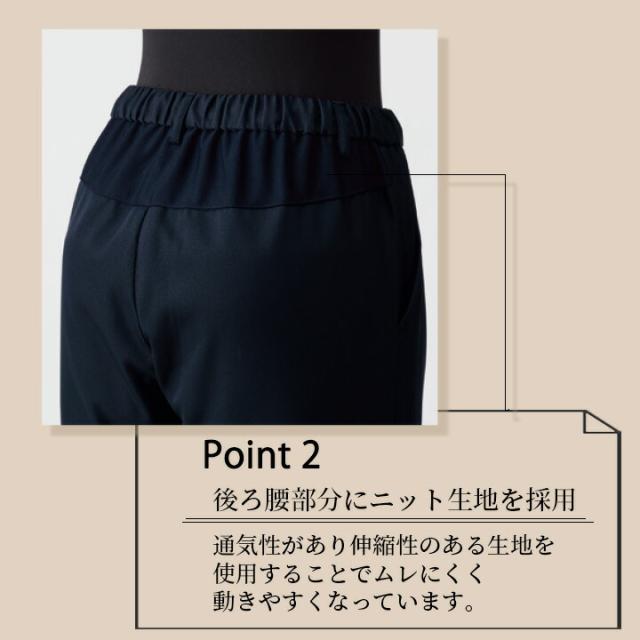 スクラブにフィットする、動きやすく合わせやすいパンツ。