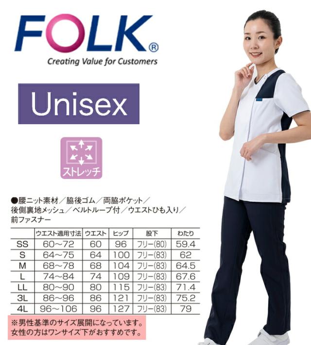 フォーク FOLK パンツ ストレッチ フォーク5030sc ストレッチパンツ ユニフォーム ズボン 医師 医療用 看護師 白衣 クリニック 介護服 フォーク ウエスト 術衣 ネイビー メディカル 通気性がいい