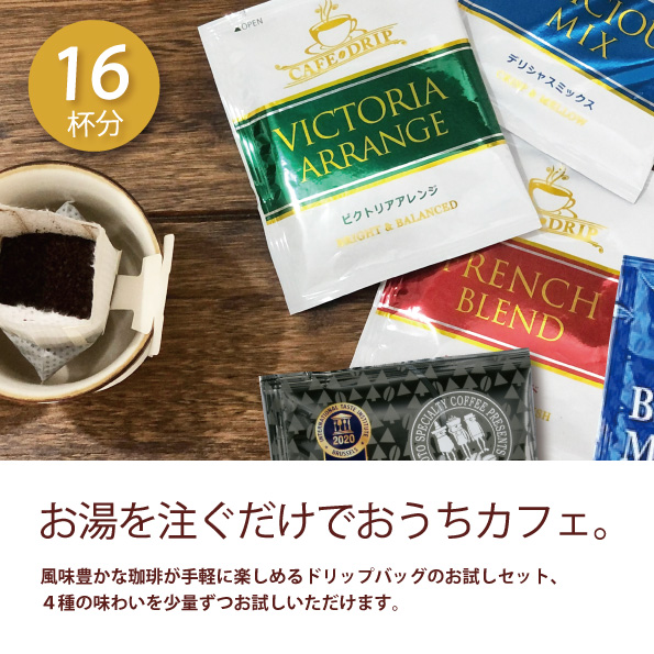 ドリップコーヒー コーヒー お試し 4種 16杯分セット ドリップバッグ メール便 送料無料 ぽっきり ポイント消化 ポイント消費 飲み比べ