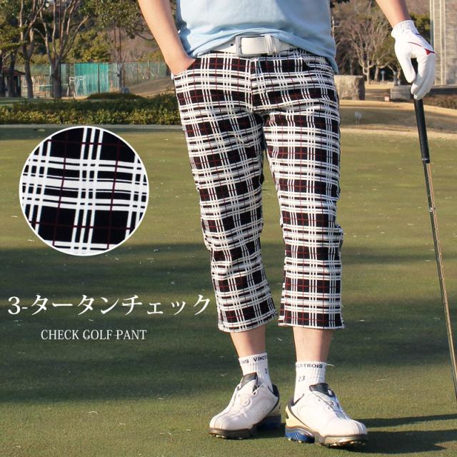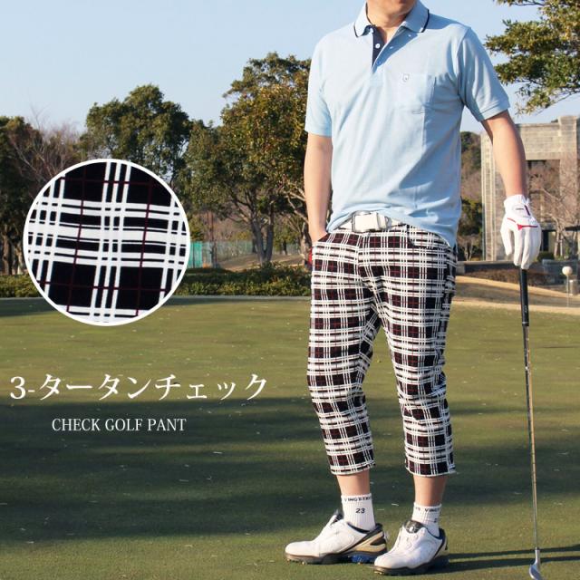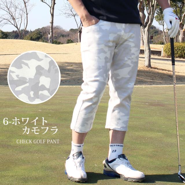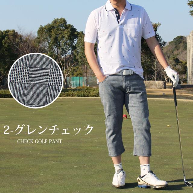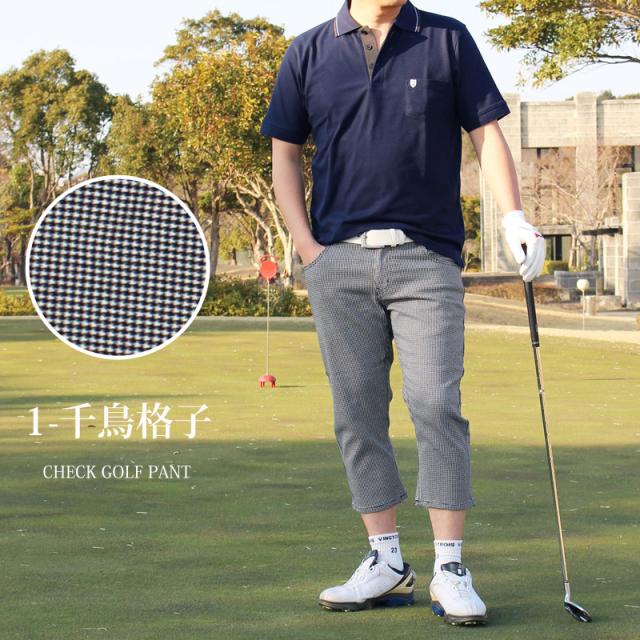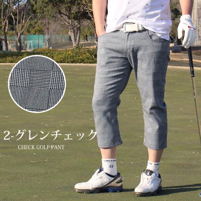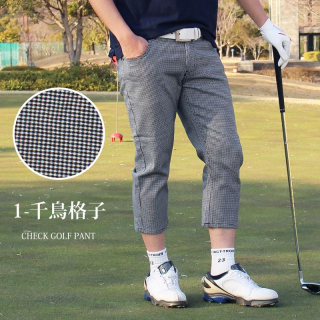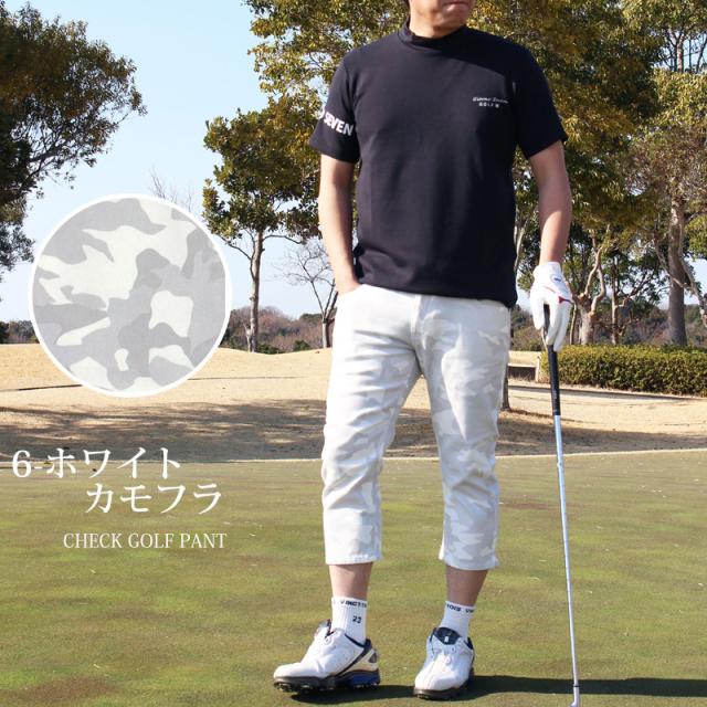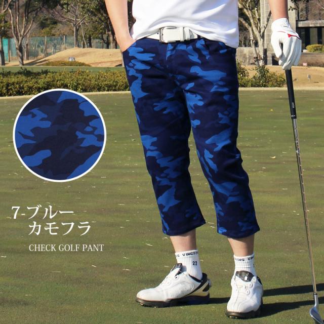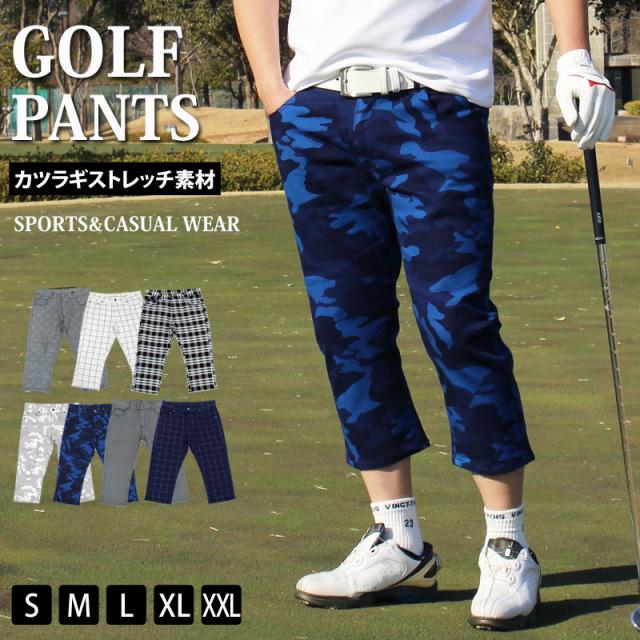 S~XXL 送料無料 春夏 新作 ゴルフパンツ メンズ クロップドパンツ ゴルフウェア おしゃれ チェック柄 カモフラ 迷彩 千鳥格子 ストレッチ ハーフパンツ ショートパンツ スポーツウェア 7分丈 父の日 ゆうパケ