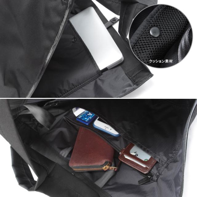 クッション素材を使用したポケットには、13インチのノートパソコンやタブレットなどが収納可能です。