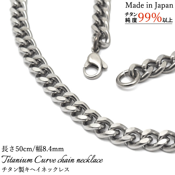 キヘイネックレス チタン製 ネックレス 日本製 長さ50cm 幅8.4mm チェーンネックレス 喜平チェーン キヘイチェーン 男性 アクセサリー アクセ 錆びにくい アレルギーフリー 金属アレルギー
