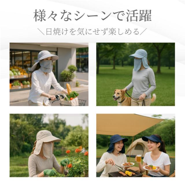 帽子 レディース 日除け uvカット 日焼け防止 マスク 首の日焼け防止 フェイスマスク つば広帽子 紫外線対策 遮光 春夏 BO-03