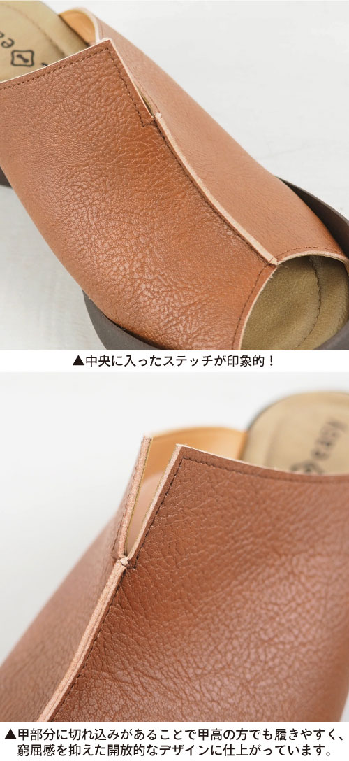 生地を2枚使用しセンターでステッチをかけたデザインのカバーサンダルです。甲側のスリットが広がるので甲高の方にも合わせていただけます。サボサンダルのように靴下と合わせればシーズンレスでお使いいただけるアイテムです。