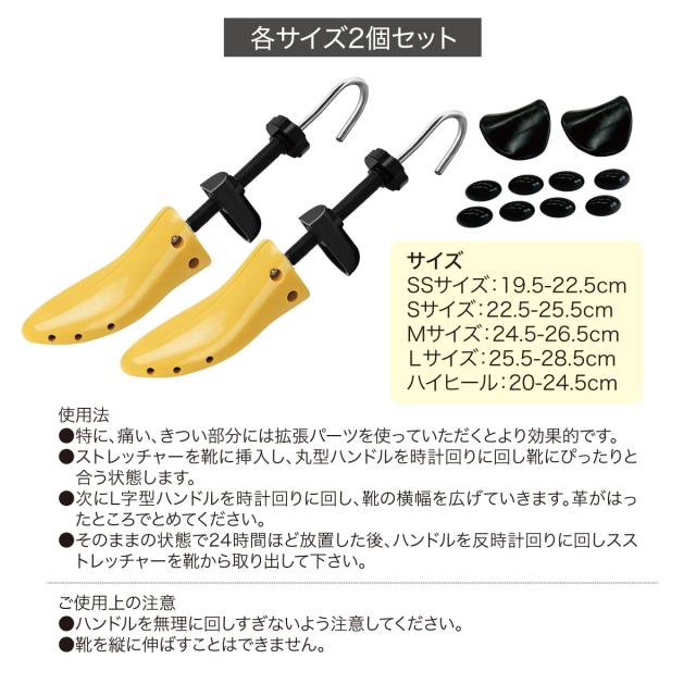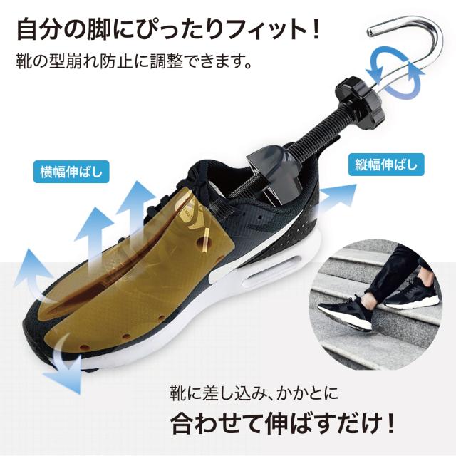 シューズストレッチャー スニーカー 2個セット シューズキーパー 女性用 男性用 シューストレッチャー シューキーパー 靴 革靴 サイズ調整 ダボ付き 外反母趾 靴伸ばし 型崩れ防止 SS S M L ハイヒール パンプス 19.5 23 26 28.5 shoes-stretcher
